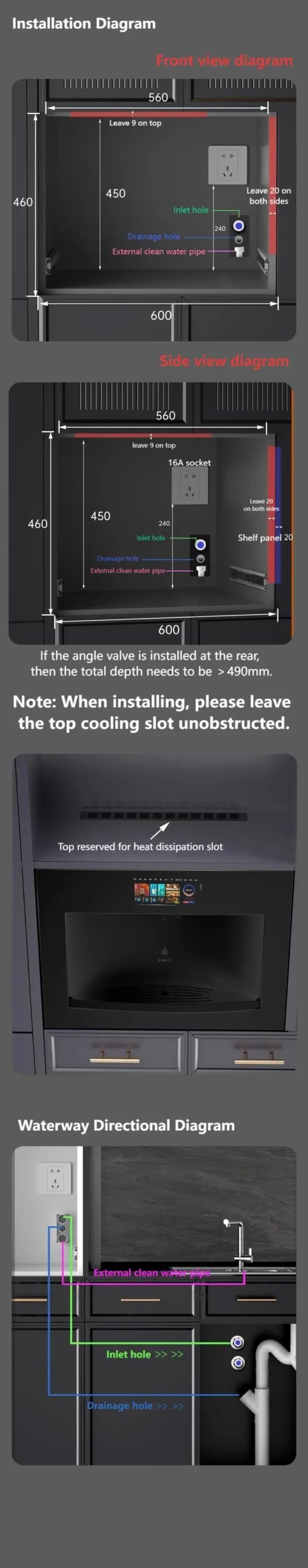 Inlet water pressure: 0.1-0.4MPa