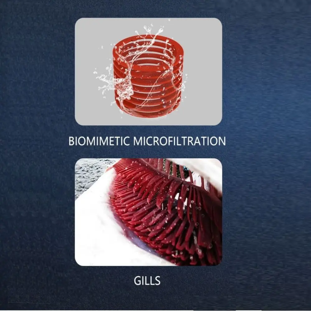 1. World’s first gill-net bionic composite precision filtration technology (equipped with gill-like bionic microfiltration + membrane precision filtration system) + water-driven rotation technology