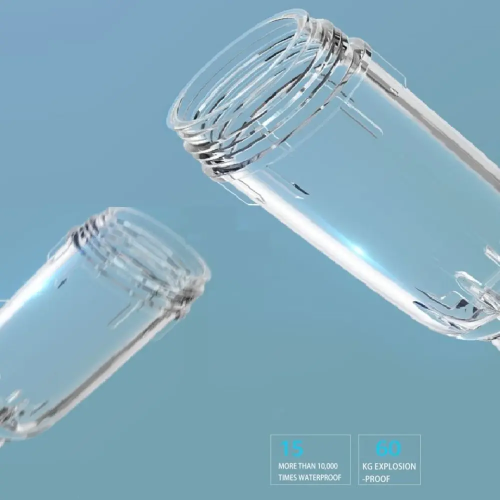 The polymer explosion-proof filter bottle adopts the material of wading parts imported materials of baby bottle grade are used, upgraded formula, does not contain bisphenola, improves the compression performance, and passes NSF, SGS testing