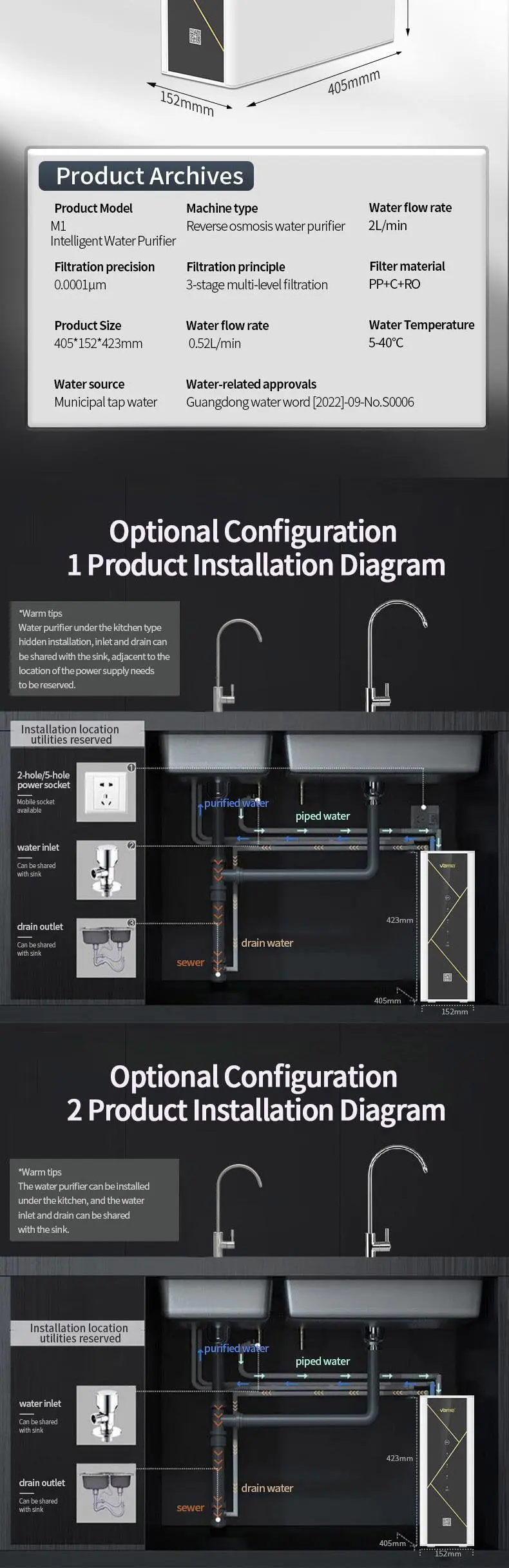 Vamia under sink ro water purifier/RO Water Machine/RO water purifier/OEM/ODM