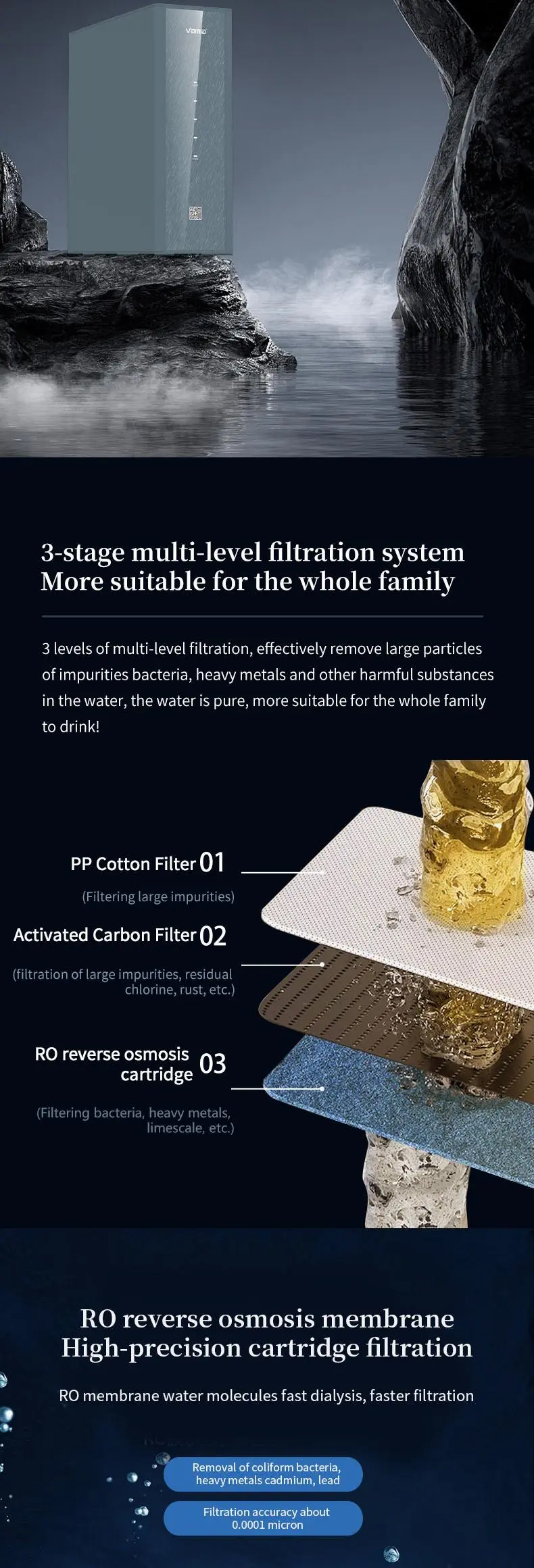 ✨ 0.0001 micron high precision RO membrane filters out heavy metals, bacteria, viruses and other harmful substances, and the water is pure