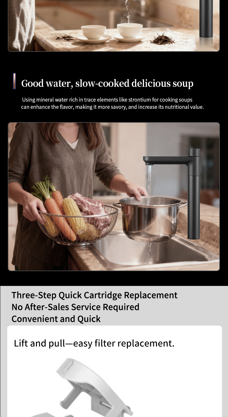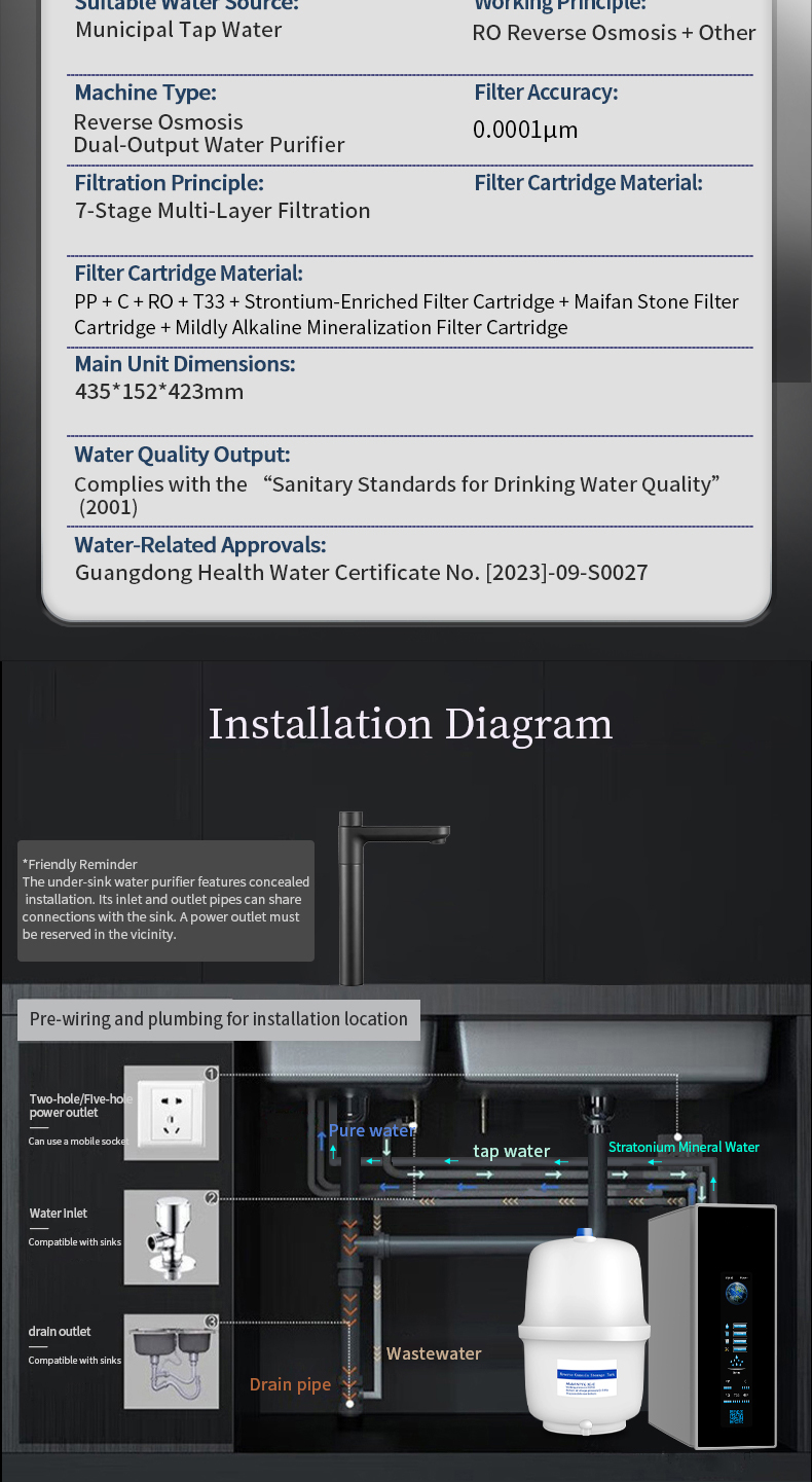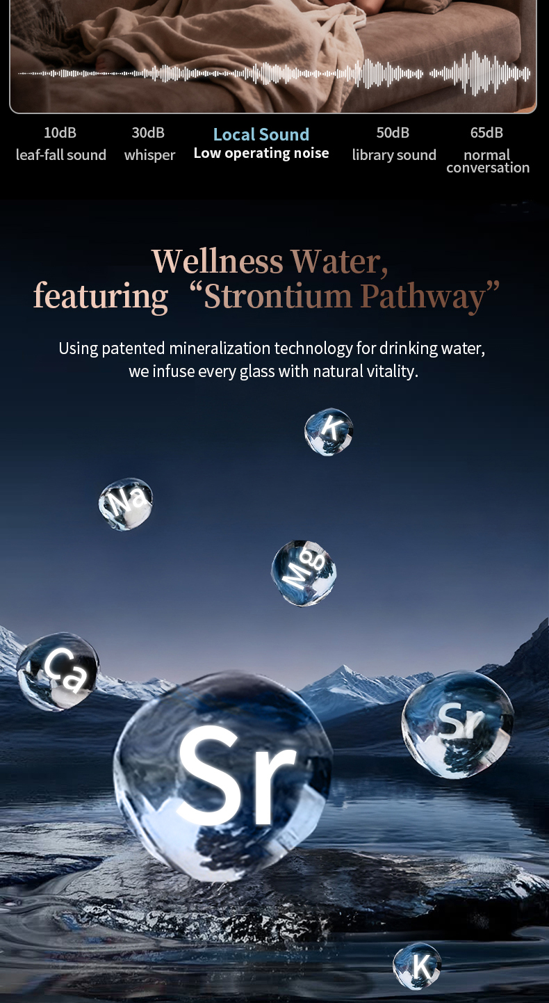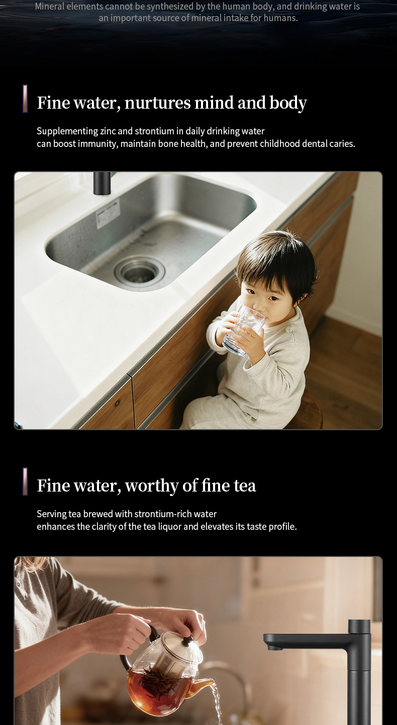 👉: Purification + Mineralization, dual water output design, adopts rich strontium multi-mineralization system