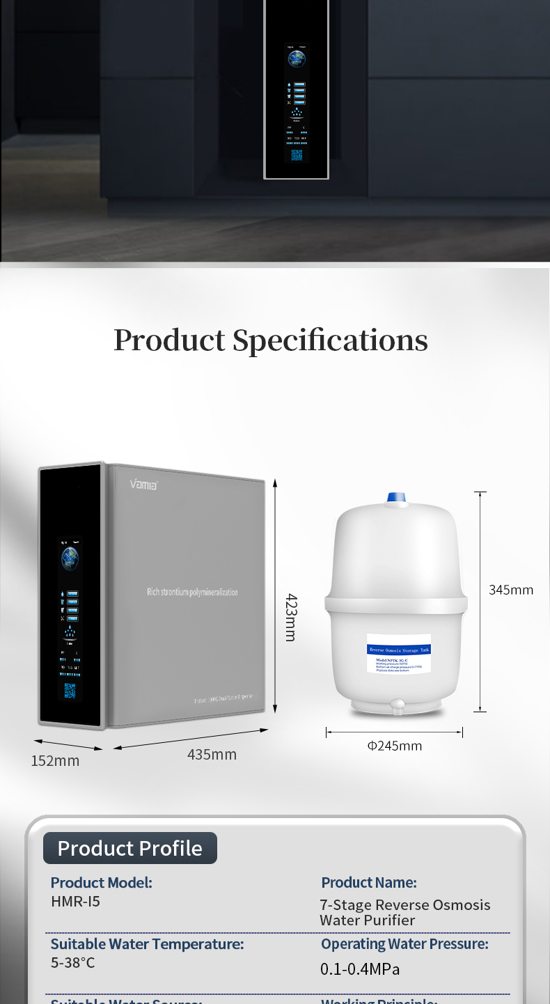 Vamia Model: I5 Strontium-Rich Multi-Mineralization 7-Stage Reverse Osmosis Water Purifier with Water Tank