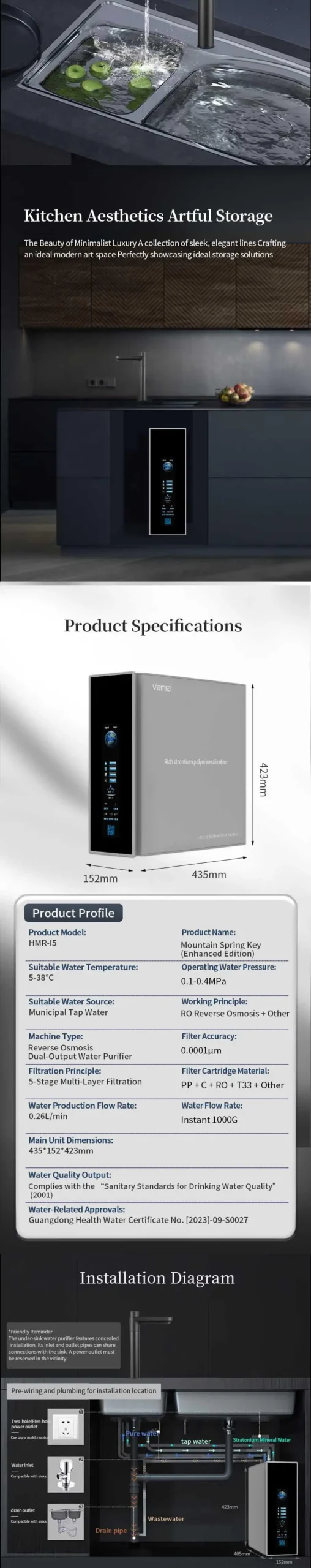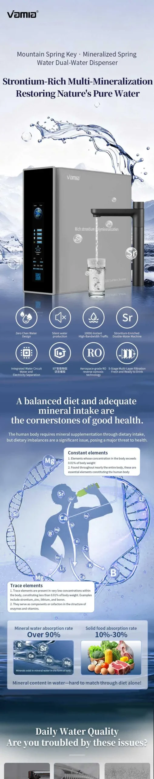Vamia Model I5 Rich Strontium Mineral Instant 1000G Spring Water Reverse Osmosis Water Purifier
