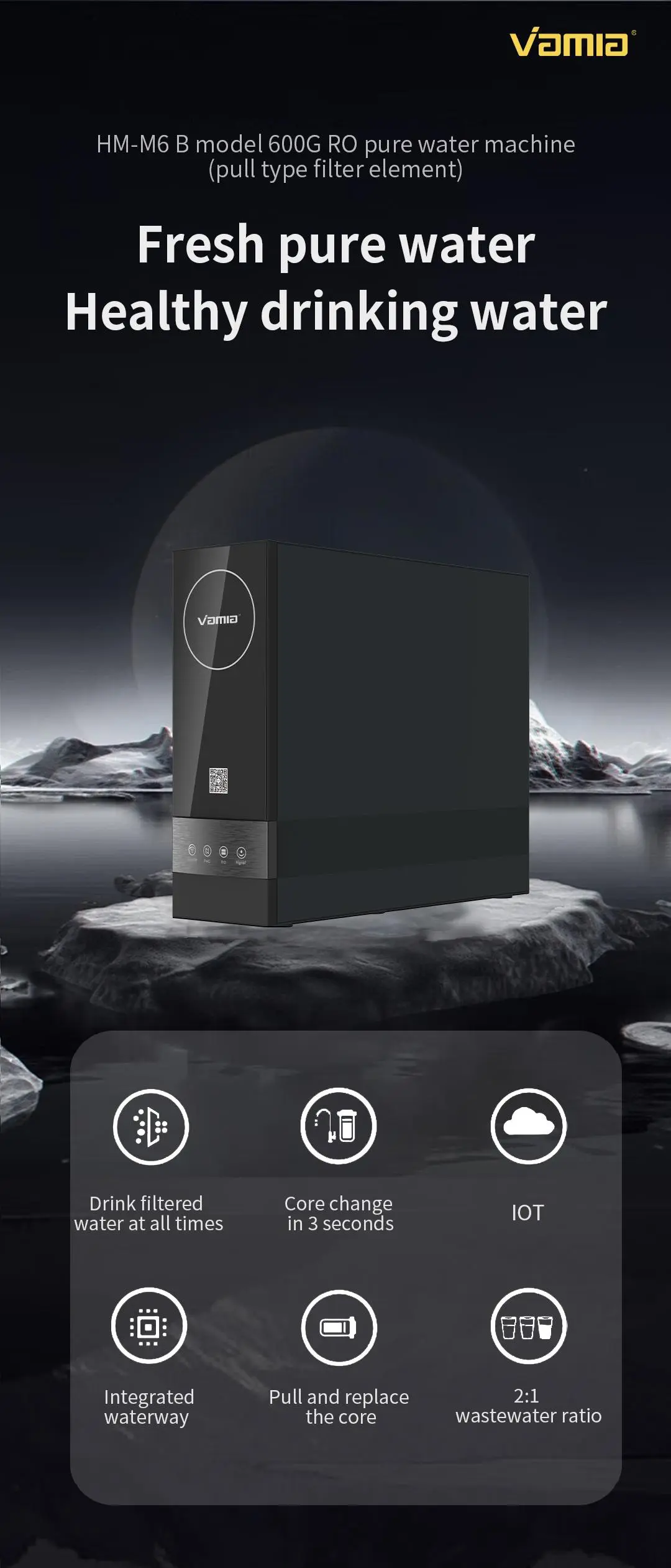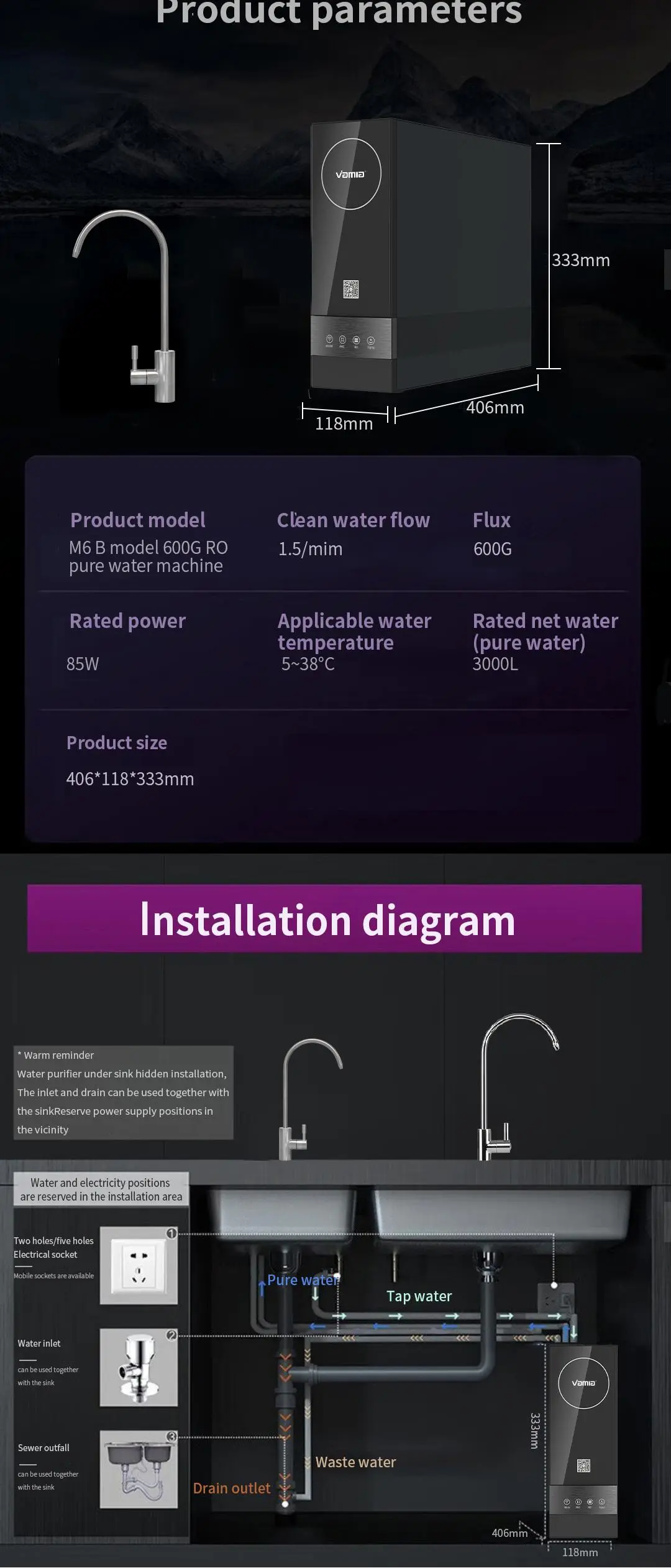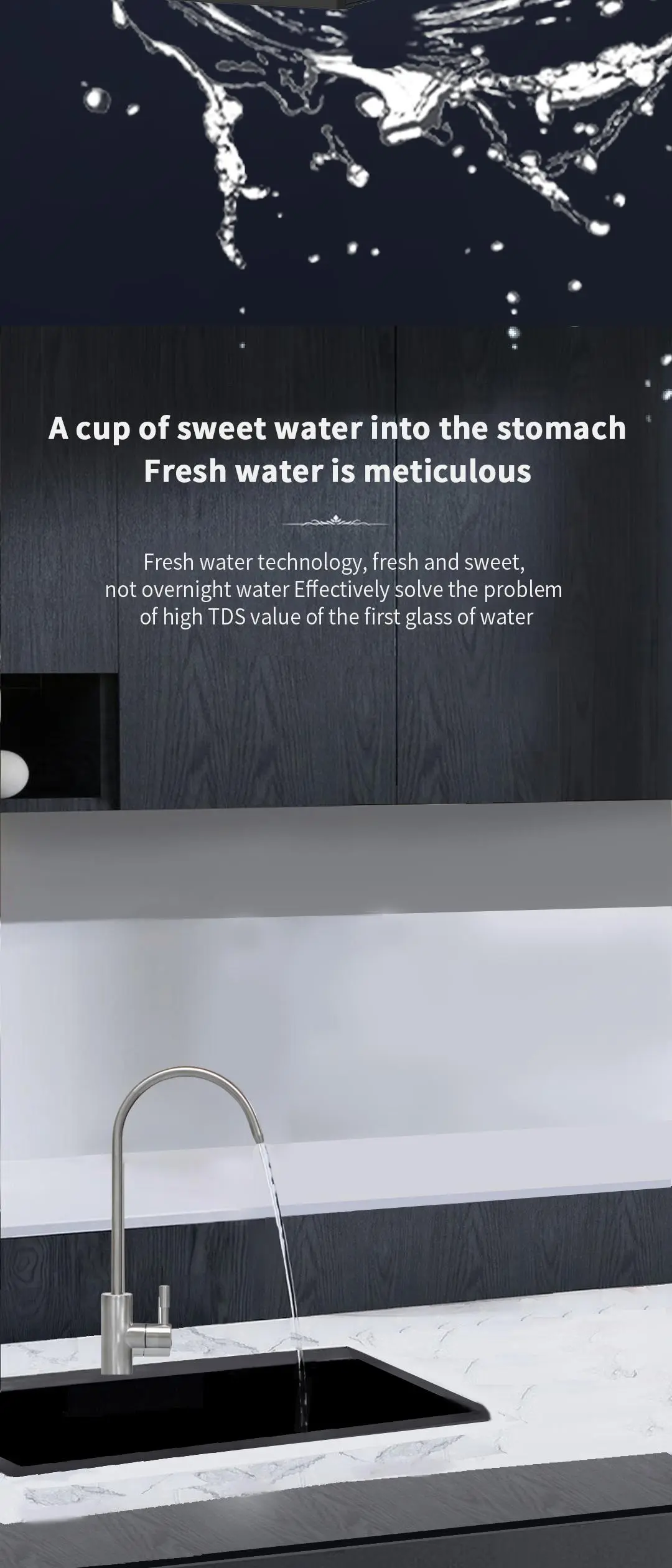 M6B model is integrated waterway design, water and electricity separation, safe and efficient water purifier. Using the United States GE diaphragm, aerospace grade RO reverse osmosis technology, water can be drunk. Advanced configuration brings better experience, original and leading technology, so that the product durability, stability is stronger, achieve lower core replacement costs. High quality activated carbon Apex linguae can enjoy the sweetness. Fresh water technology, fresh and sweet, not overnight water Effectively solve the problem of high TDS value of the first glass of water
