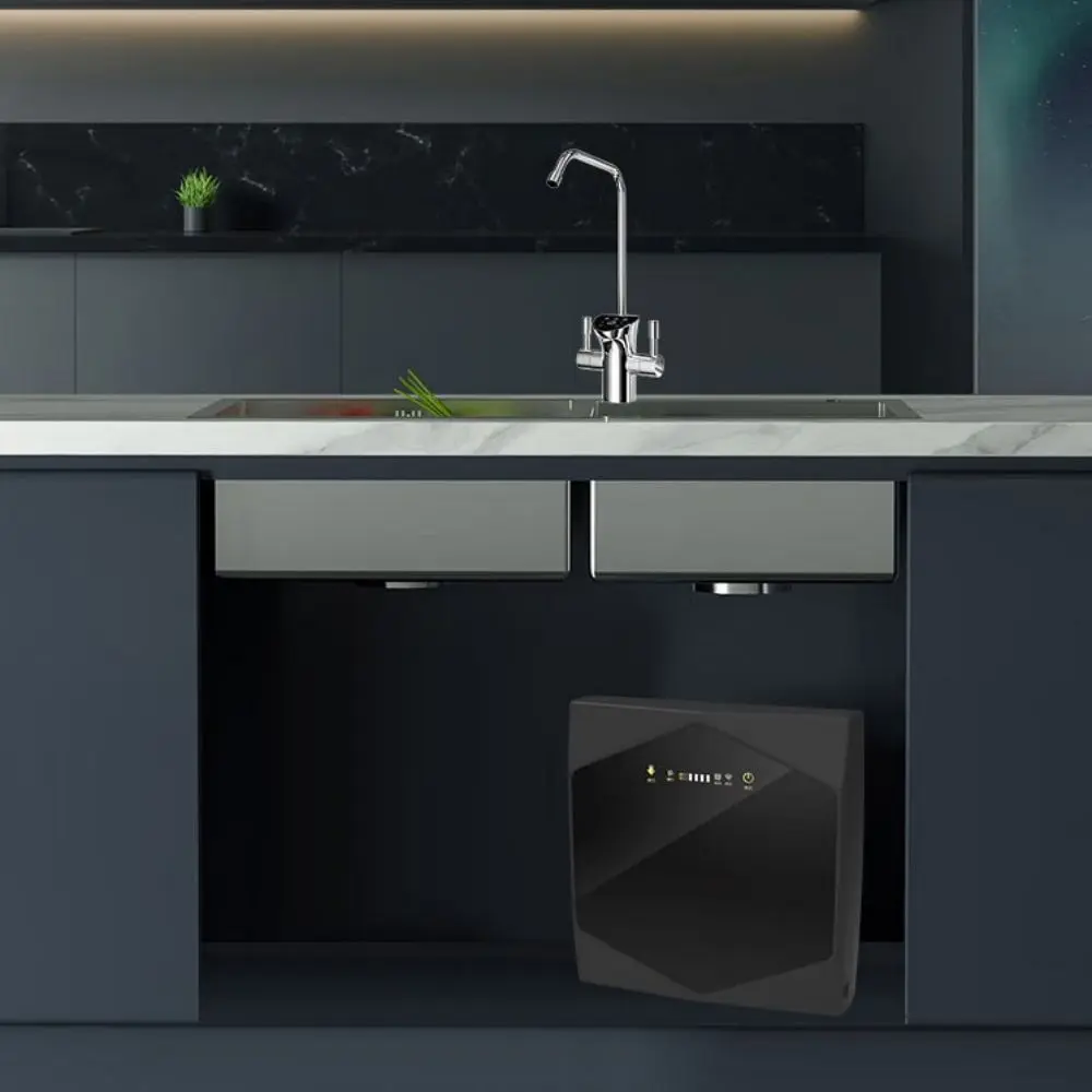 The P130C 800G reverse osmosis water purifier has 4 filters, voice broadcast, filter replacement reminder. Integrated waterway design, lead-free waterway, double outlet design. Filter element is a detachable environmentally friendly rotating filter element, high-end leather spray shell, with high-end digital display faucet.