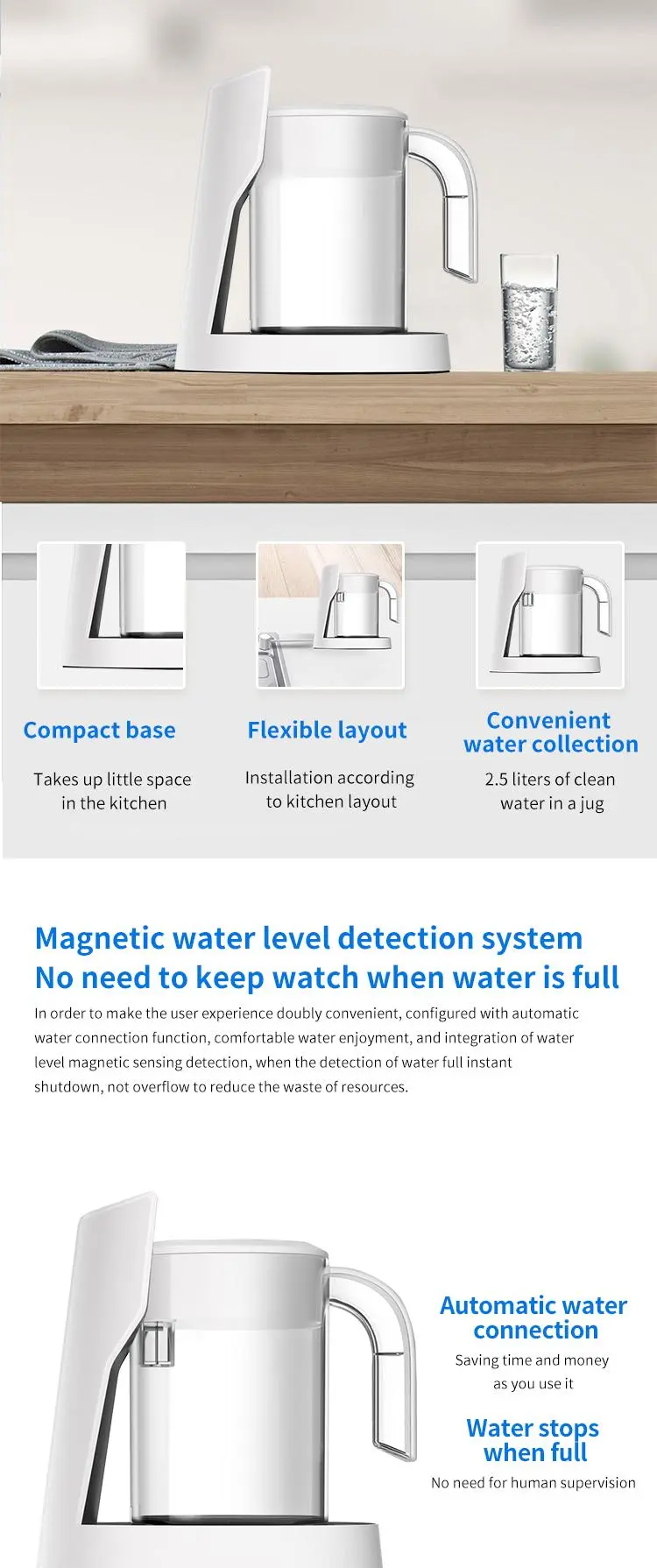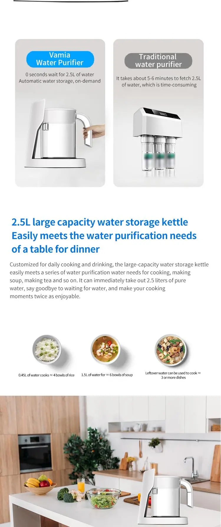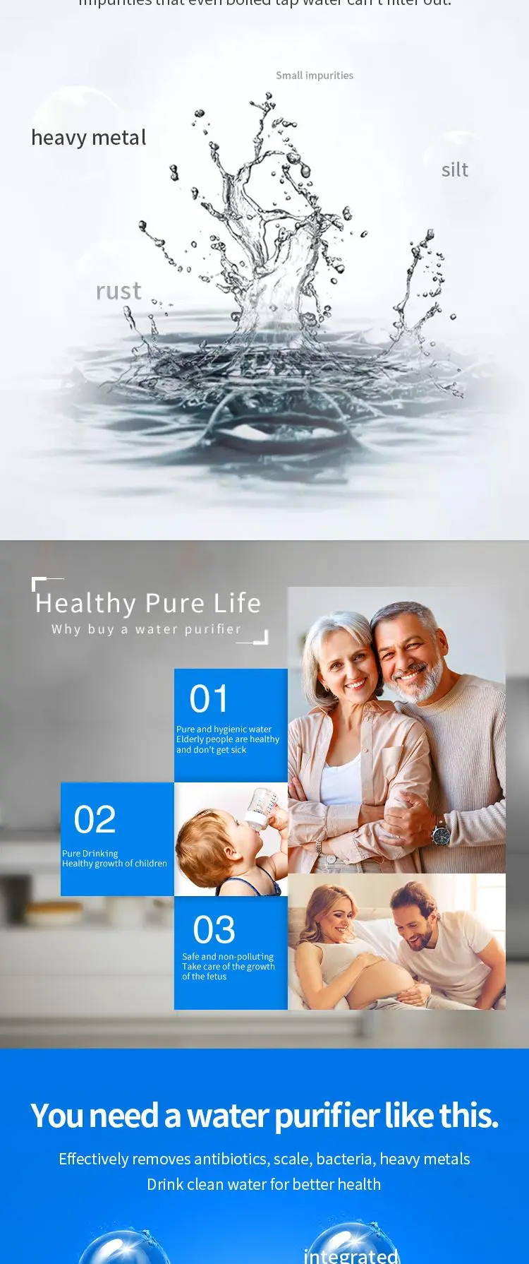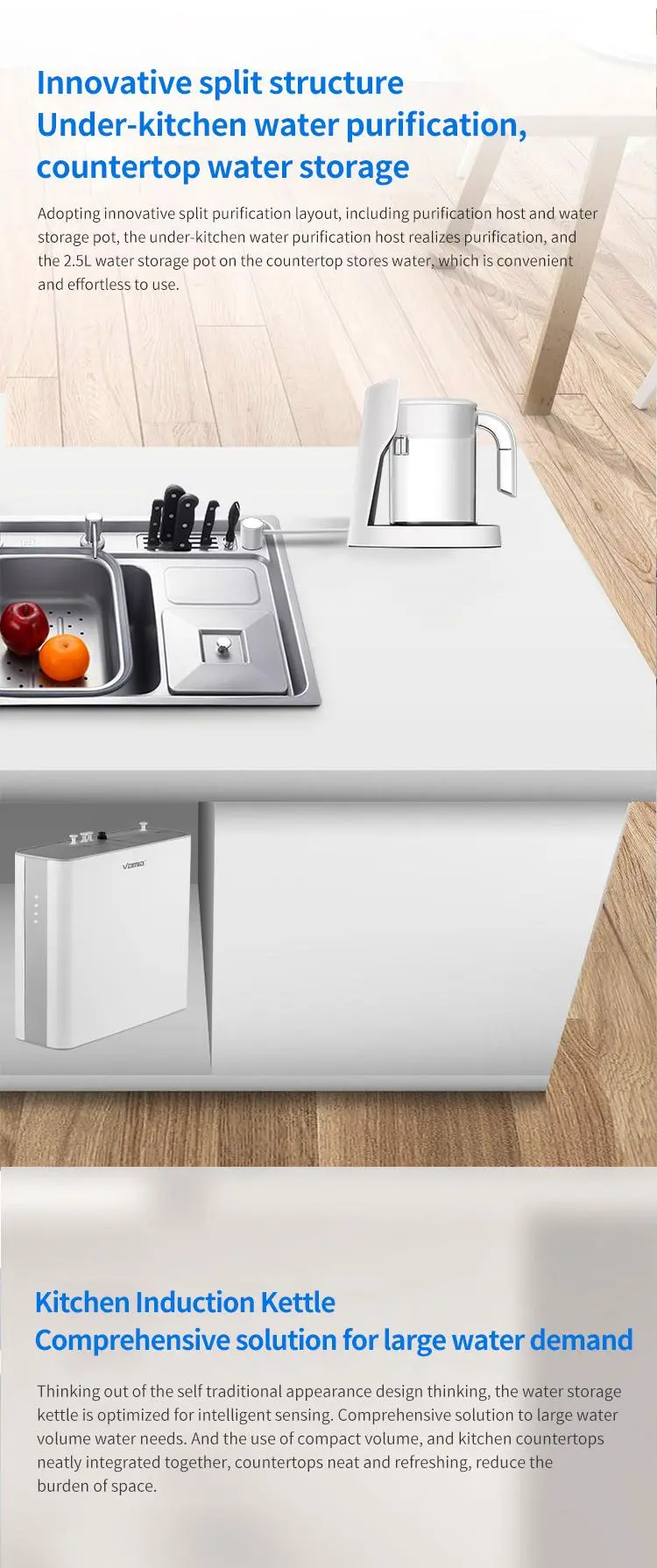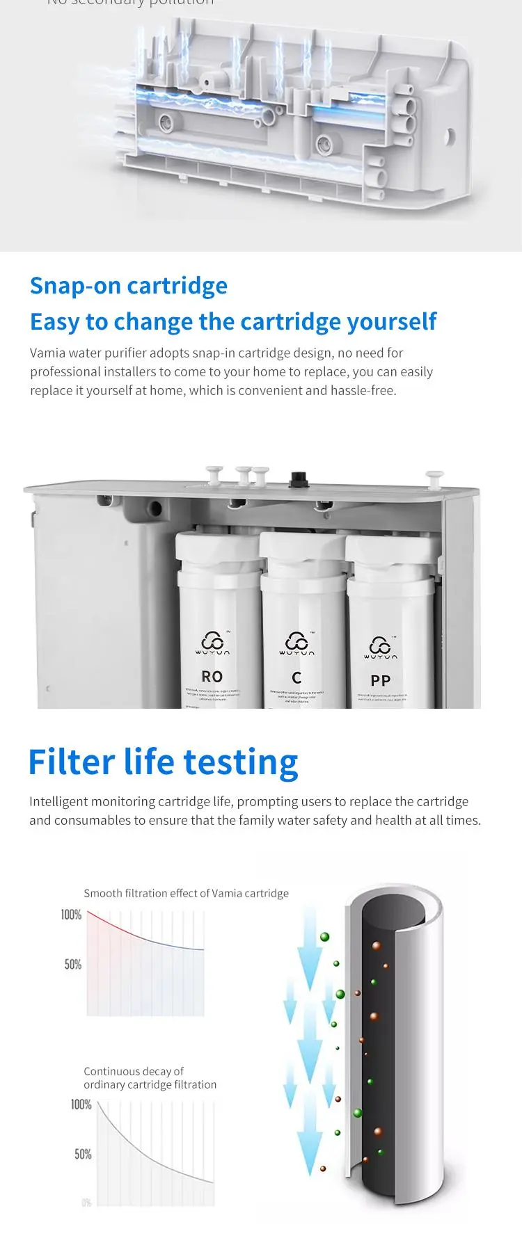 The P30B model is Vamia high-precision water filtration technology of the water purifier, combined with the layer-by-layer purification filter system, can help you remove rust, scale, heavy metals, bacteria, antibiotics and large particles of harmful substances in the tap water at home. Make every drop of water you drink fresh and clean.