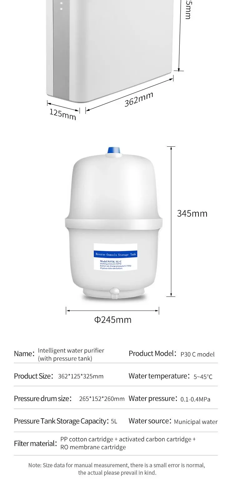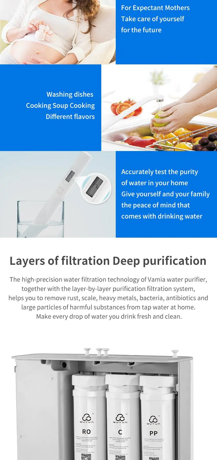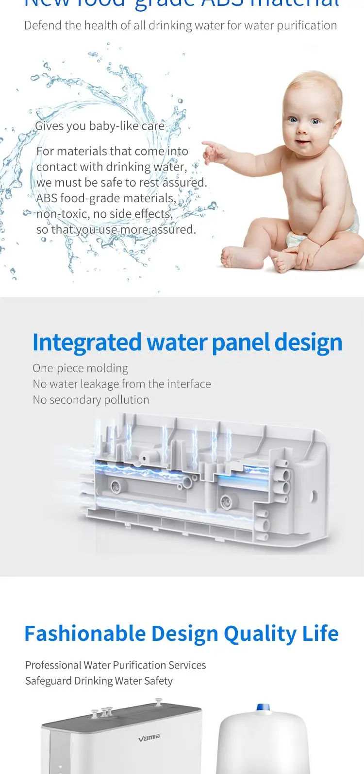 The P30C model is cto carbon filter cartridge under sink CE approval filtration system home appliances reverse osmosis water purifier. Vamia water purifier allows you to drink clean water as soon as you turn on the faucet. The RO reverse osmosis technology is a very high-precision water filtration technology with a precision of one ten thousandth of a micron (0.0001 micron). It can remove bacteria at the same time. It can also filter scale, heavy metals, antibiotics, etc. that cannot be removed by general water purifiers.