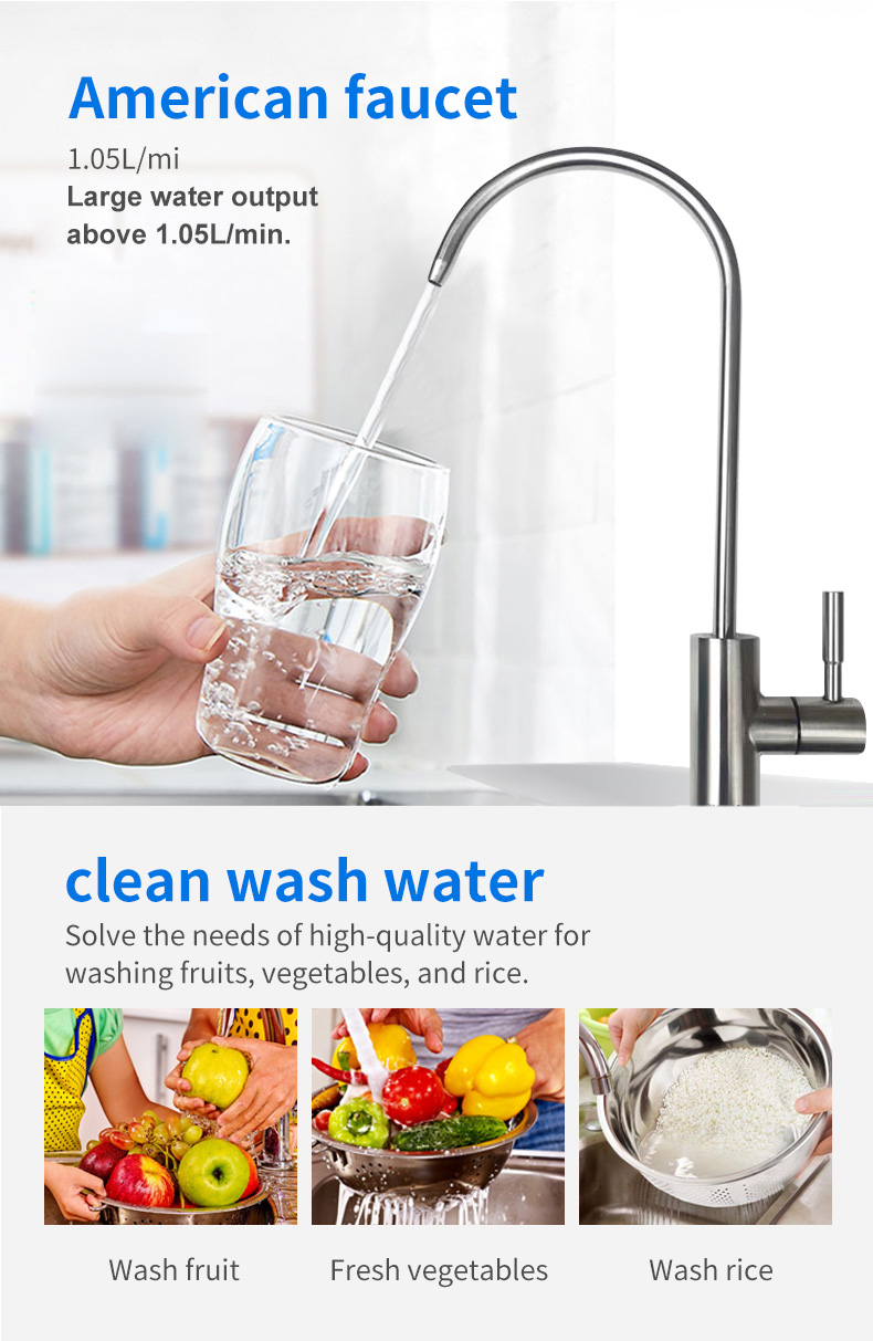 3. On-demand drinking, powerful dual outlet design (1/2 for thorough cleaning + 1/4 for drinking)