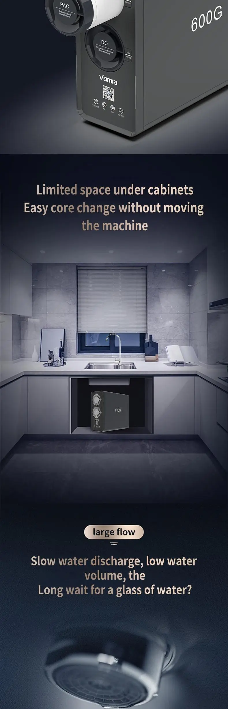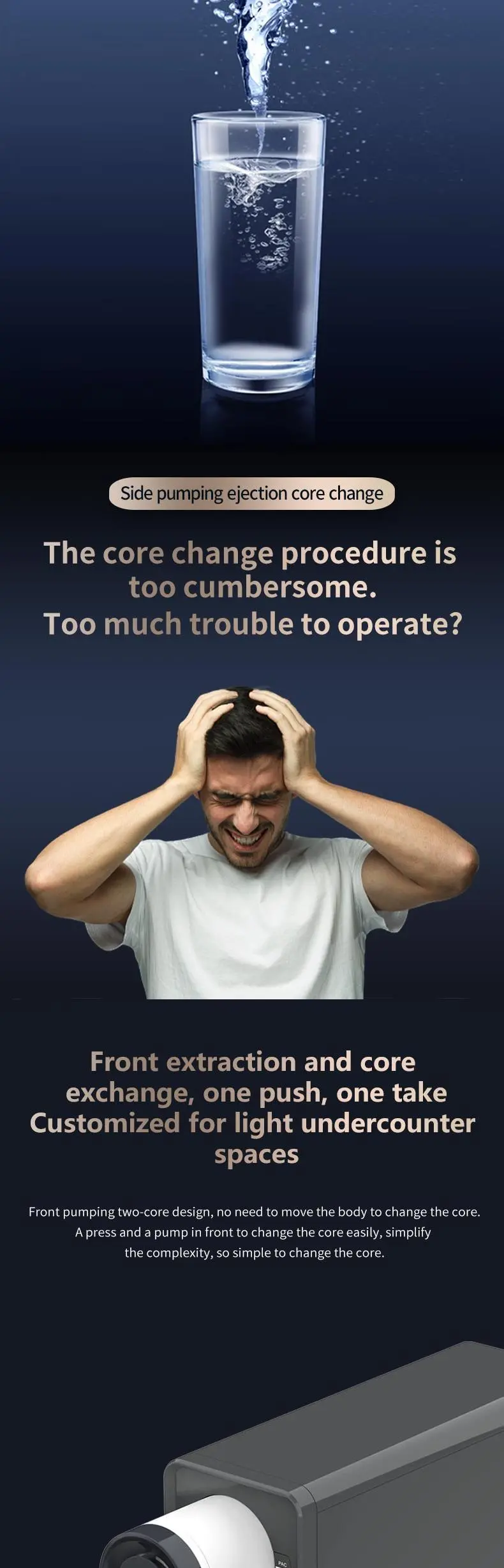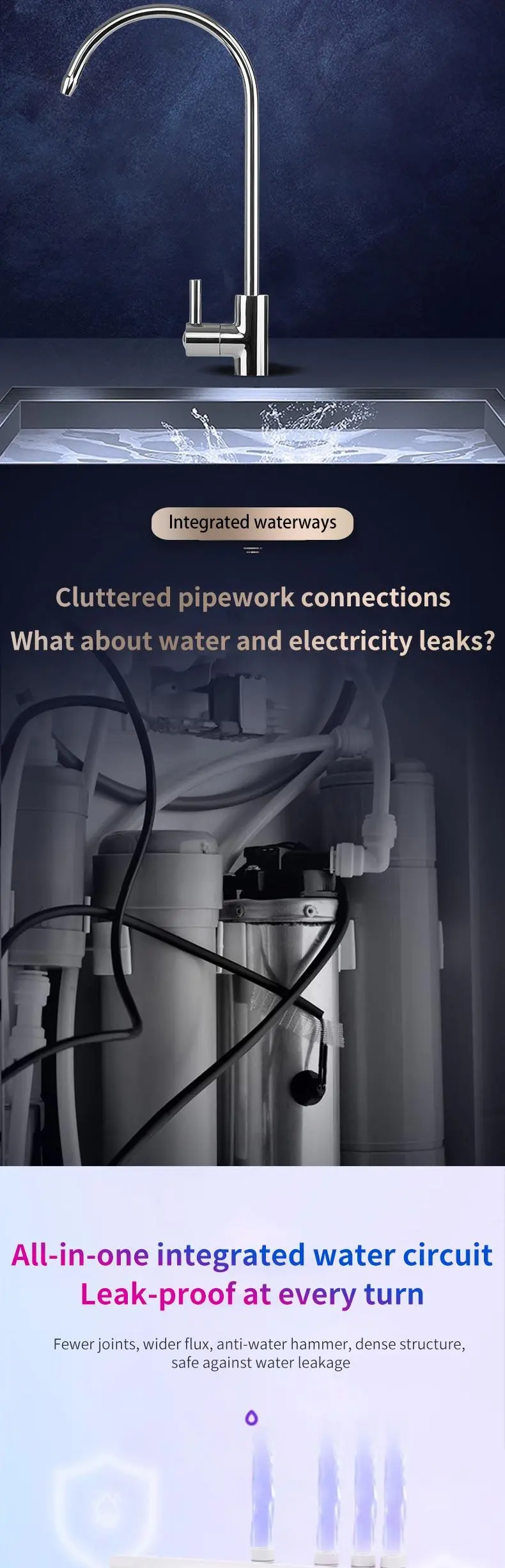 P90F model is integrated waterway design, water and electricity separation, safe and efficient water purifier. Using the United States GE diaphragm, aerospace grade RO reverse osmosis technology, water can be drunk. Advanced configuration brings better experience, original and leading technology, so that the product durability, stability is stronger, achieve lower core replacement costs. High quality activated carbon Apex linguae can enjoy the sweetness. Fresh water technology, fresh and sweet, not overnight water Effectively solve the problem of high TDS value of the first glass of water