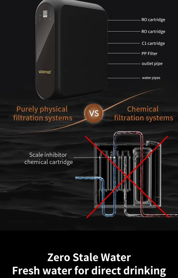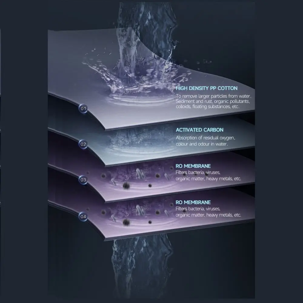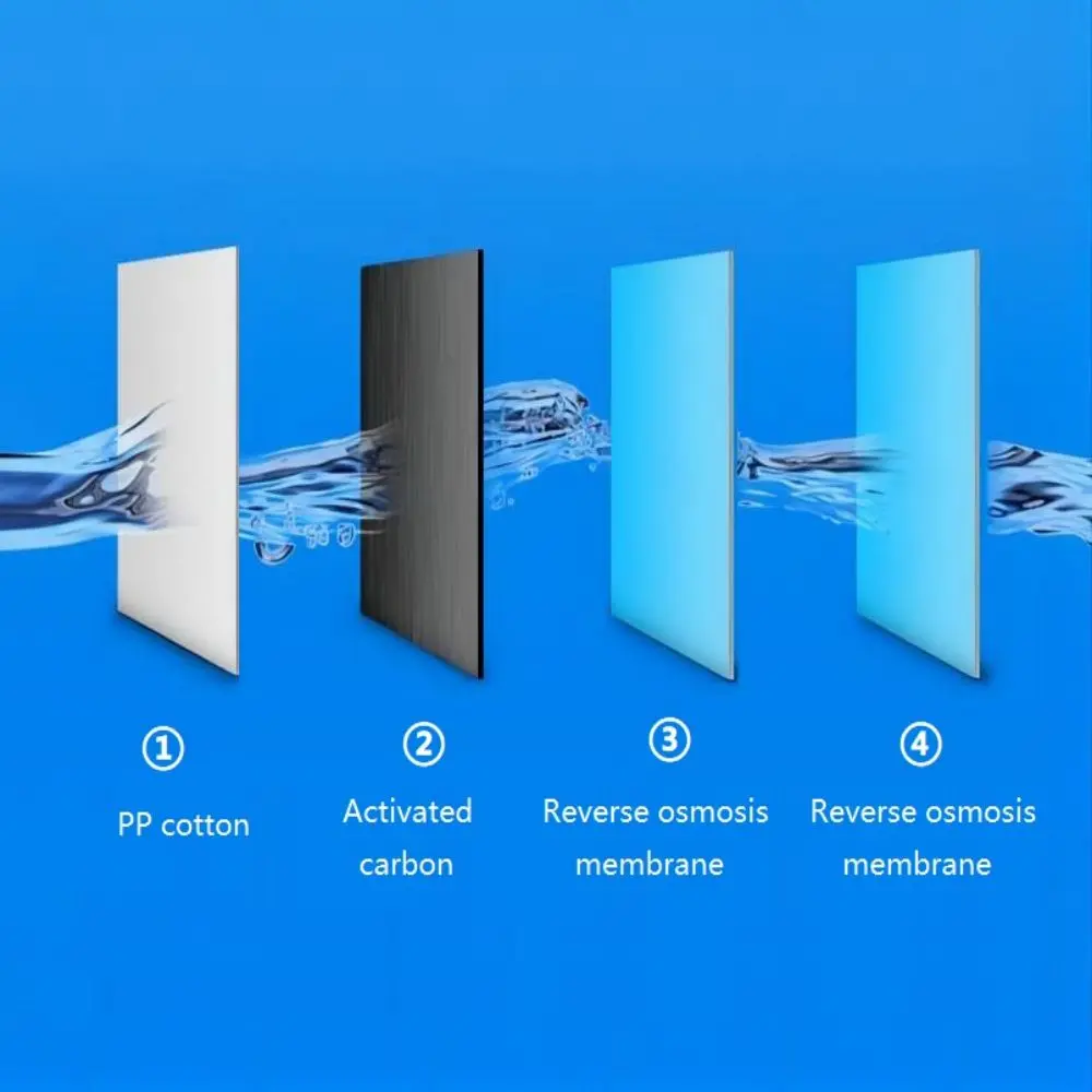 Filtration accuracy 0.0001 micron, the most effective removal of calcium, magnesium, bacteria, organic matter, inorganic matter, metal ions and radioactive substances in water